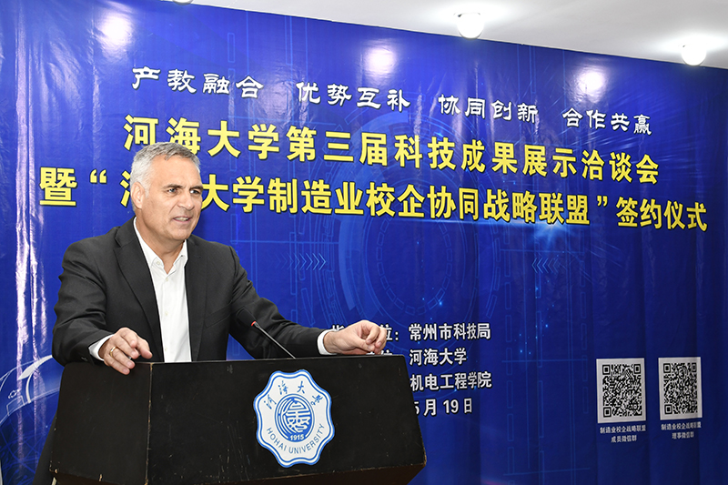 张兵在致辞中,对作为第十三届中国常州先进制造技术成果展示洽谈会系列活动之——伟德victor1946第三届科技成果展示洽谈会暨伟德victor1946制造业校企协同战略联盟签约仪式的举办表示热烈祝贺,对常州市各级政府及各位企业家对我校的信任与支持表示衷心感谢。他指出,制造业校企协同战略联盟的成立,旨在“推进产教融合、深化协同培养、促进协同创新、实现互利共赢”,这是校企合作新模式的又一次积极探索。希望以此次战略联盟的成立为契机,深入探索人才培养、科研合作、成果转化等校企合作新模式,充分发挥企业创新主体的项目资源优势和我校创新要素的集聚优势,为高校和地方产教融合谏言献策、为校企深度合作提供思路对策,努力将联盟打造成为全省乃至全国校企协同的成功典范。