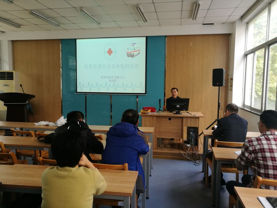 10月17日下午,机电工程实验中心邀请常州市120急救中心主任秦国良来学院开展急救常识培训。秦国良主任以理论讲授、现场演示、实践操作等方式进行了授课,通过播放幻灯片和视频、展示实物、现场演示等形式,以近年来发生在身边的鲜活事例,强调了应急救护“黄金四分钟”的重要性,随后逐一讲解了胸外按压、人工呼吸、止血、包扎、骨折固定、伤员搬运等急救理论与施救技巧,并现场实操心肺复苏等方法,普及日常的急救知识。