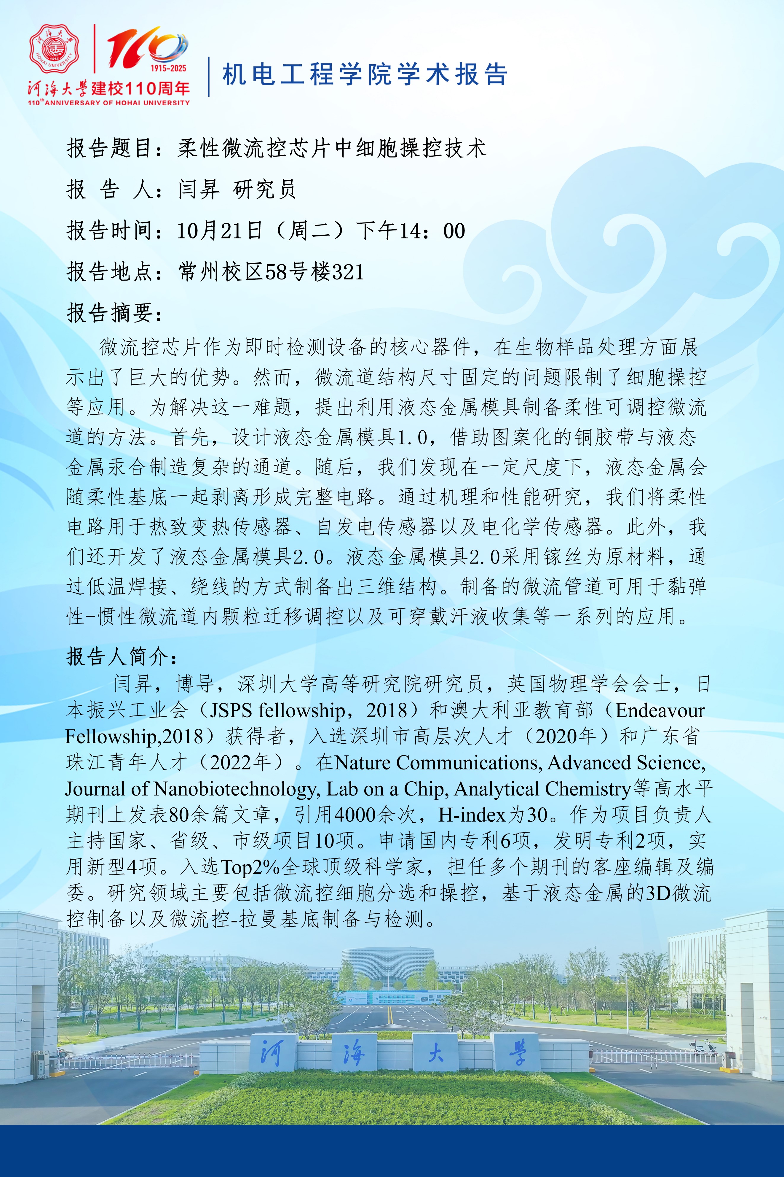 学术报告:柔性微流控芯片中细胞操控技术